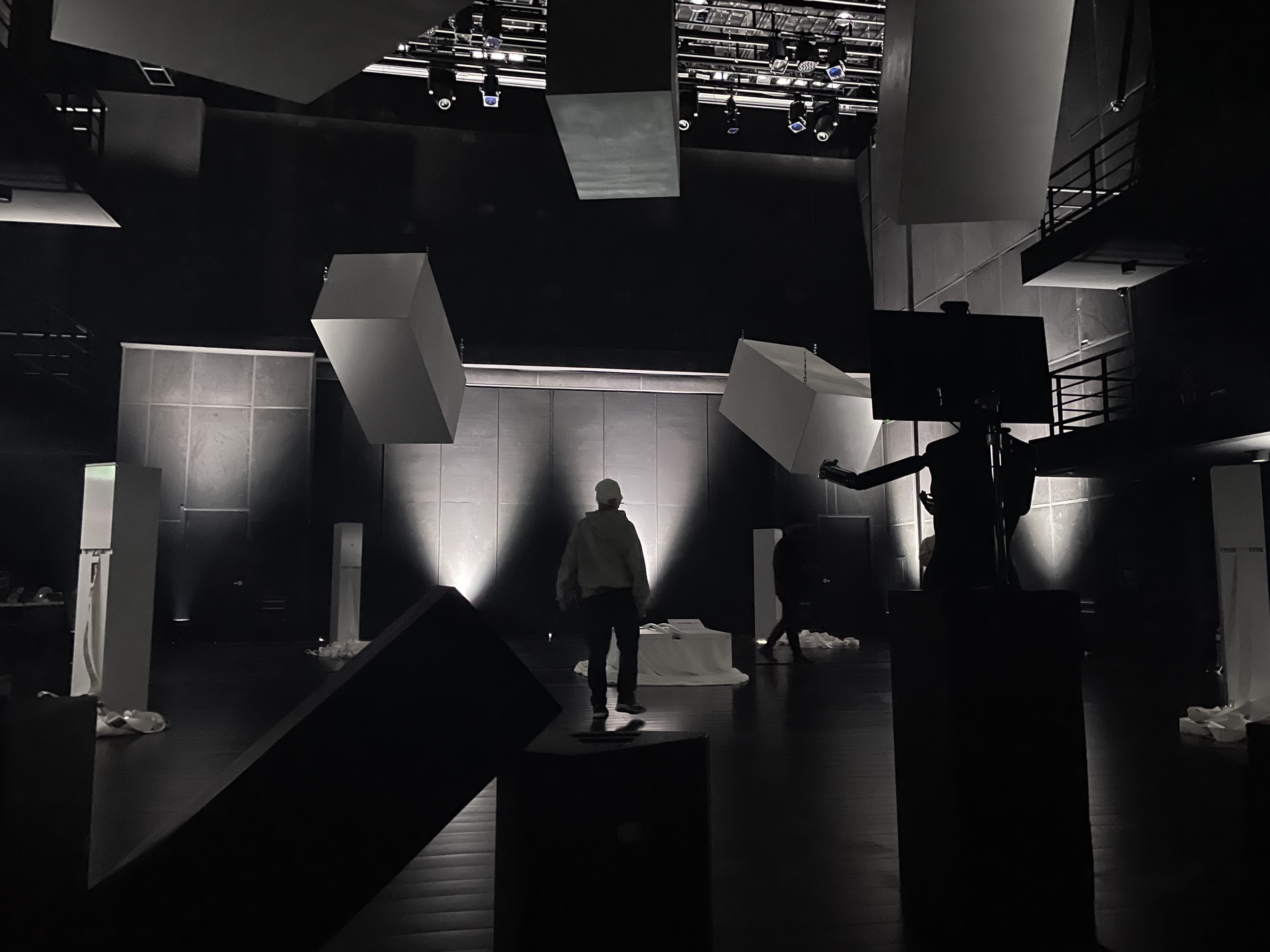 공간에 머무르는 하나하나를 살펴보면, 구조물들의 형태는 브라운관을 얼굴로 품고 있는 흉상의 설치 외에는 전반적으로 의사-냉장고 형태이다. 천장에 비스듬하게 걸린 직사각형 큐브들 아래로 폭이 좁은 하얀색 구조물이 바깥쪽에 놓여 사각형의 대형을 이루는데, 여기서 인쇄된 용지의 내용물은 약간의 차이를 수반한다. 중앙에는 양문형 냉장고의 틀을 모방한 구조물이 뉘어 있고, 그 중앙의 종으로 열린 틈으로 프로젝터의 빛이 새어 나오는데, 조명이 꺼진 후에 이는 포그의 존재와 함께 영상으로 비로소 가시화된다.